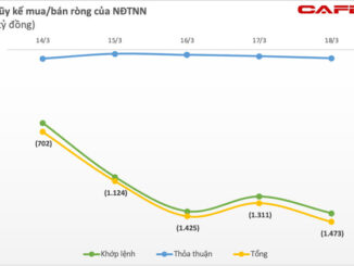 Cụ thể trong tuần 14-18/3, nhà đầu tư ngoại duy trì bán ròng trên cả kênh khớp lệnh thỏa thuận. Theo đó, nếu chỉ xét trên kênh khớp lệnh, giá trị bán ròng của khối ngoại trong tuần đạt 1.399 tỷ đồng, thêm vào đó họ bán ròng 73 tỷ đồng mua ròng trên kênh thỏa thuận qua đó nới rộng thêm đà bán ròng của tuần.