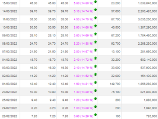 Đi kèm với việc tăng giá mạnh, thanh khoản của cổ phiếu RDP cũng được cải thiện từ mức vài chục nghìn đơn vị được khớp lệnh mỗi phiên, hiện có phiên đã xấp xỉ 1 triệu đơn vị được khớp lệnh.